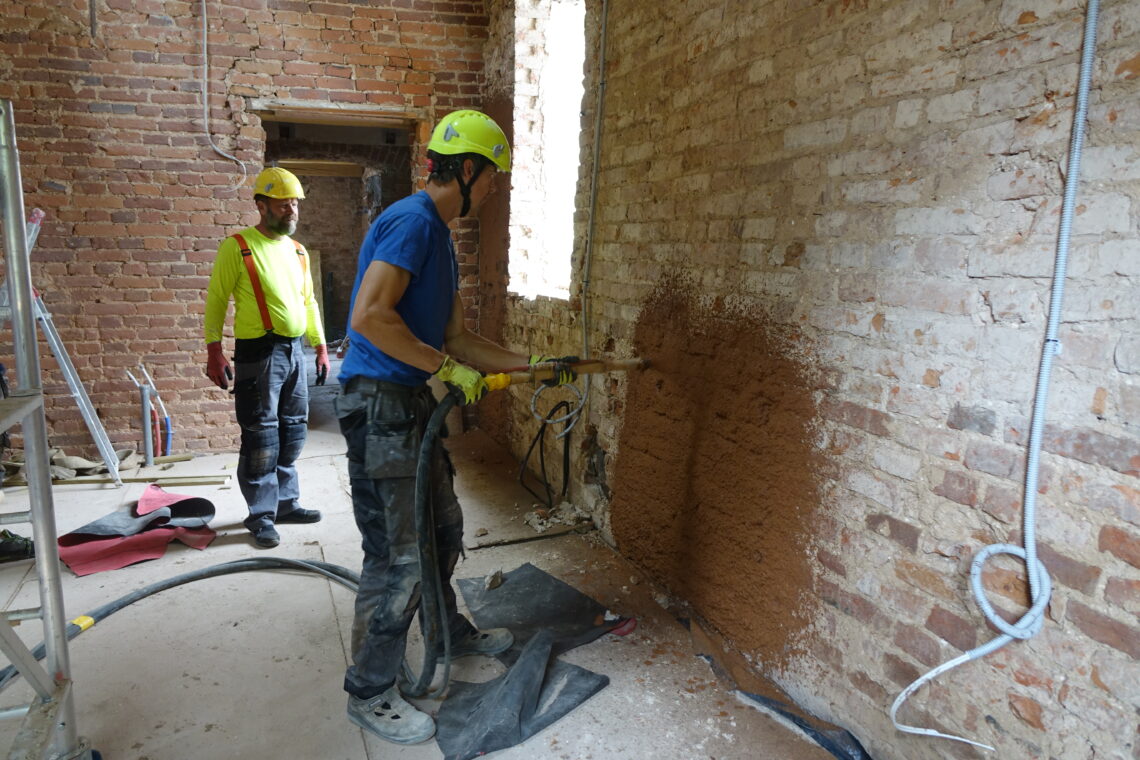 „Mooste vana tallihoone seintes oli palju ladestunud soolasid ja mineraale. Ka pinnas oli kerkinud ning pinnasevesi pääses hooneni,“ räägib Malvo Toominga. „Seega otsustasime välisseinte puhul meetri kõrguselt soojustada keramsiidi ja lubja või savi seguga – orgaanika puhul näitasid simulatsioonid ja kalkulatsioonid niiskusega seotud riske, küll aga uuritakse neid lahendusi ja riske reaaloludes teadustööde raames meie katseseinal. Kõrgemale jäänud kolm meetrit seinapinda soojustati aga ka muuhulgas näiteks lubja ja kanepiluu seguga ehk Hempcrete´ga.