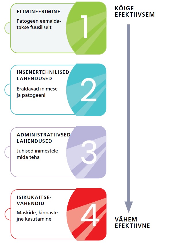 - Ruumipõhine ringlusõhuga jahutus- või kütteseade lülitatakse välja. Juhul kui seadet ei ole võimalik välja lülitada või see on vajalik ruumi temperatuuri tagamiseks, hoitakse see käigus ja tagatakse pidev õhuvool läbi seadme.